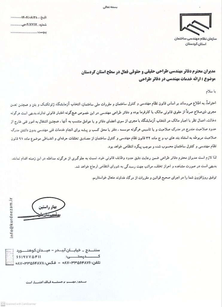 02 مهر اخبار نامه رئیس سازمان نظام مهندسی ساختمان استان کردستان به مدیران دفاتر طراحی حقیقی و حقوقی/ ارائه خدمات مهندسی در دفاتر طراحی 2 مهر 1404 توسط هورامان بهرامی 0 نظرات نامه رئیس سازمان نظام مهندسی ساختمان استان کردستان به مدیران دفاتر طراحی حقیقی و حقوقی/ ارائه خدمات مهندسی در دفاتر طراحی◾ انتخاب ...ادامه خواندن