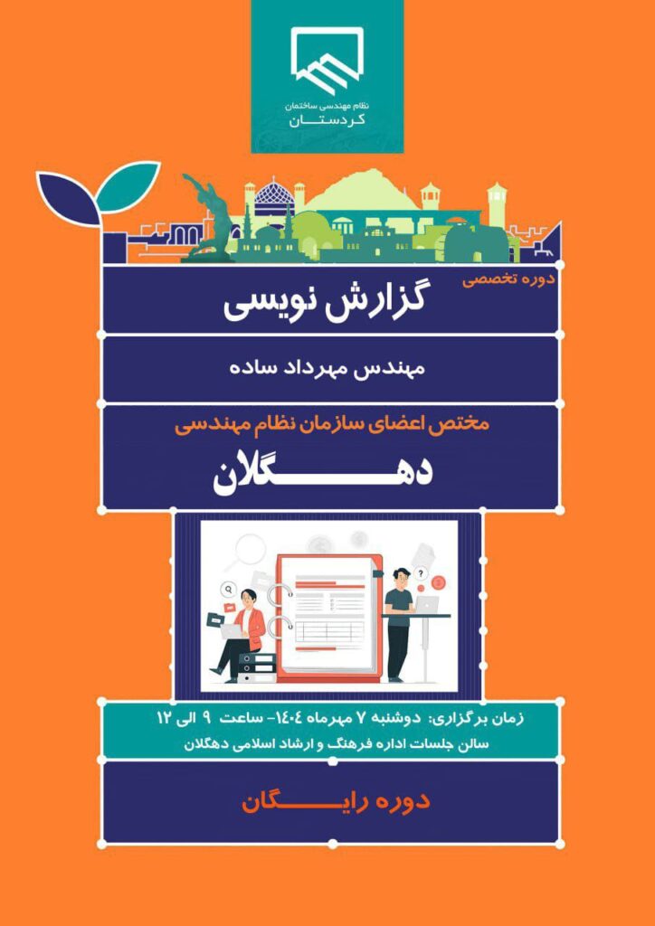 05 مهر اخبار قابل توجه اعضای محترم سازمان نظام مهندسی ساختمان استان کردستان در شهرستان دهگلان: دوره گزارشنویسی 5 مهر 1404 توسط هورامان بهرامی 0 نظرات قابل توجه اعضای محترم سازمان نظام مهندسی ساختمان استان کردستان در شهرستان دهگلان:دوره گزارشنویسی🔹 مدرس: مهندس مهرداد ساده 🔹 و...ادامه خواندن