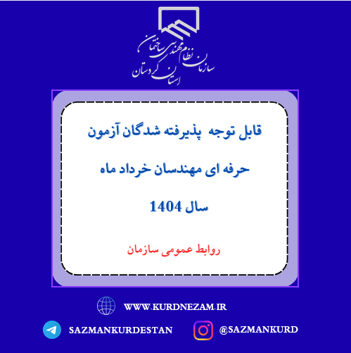 17 آذر اخبار, اطلاعیه های آموزش قابل توجه پذیرفته شدگان آزمون حرفه ای مهندسان خرداد ماه سال 1404 17 آذر 1404 توسط هورامان بهرامی 0 نظرات بدین وسیله به اطلاع آن دسته از مهندسانی که در آزمون ورود به حرفه مهندسی خرداد ماه سال 1404 پذیرفته شده اند می رساند جهت اخذ ...ادامه خواندن